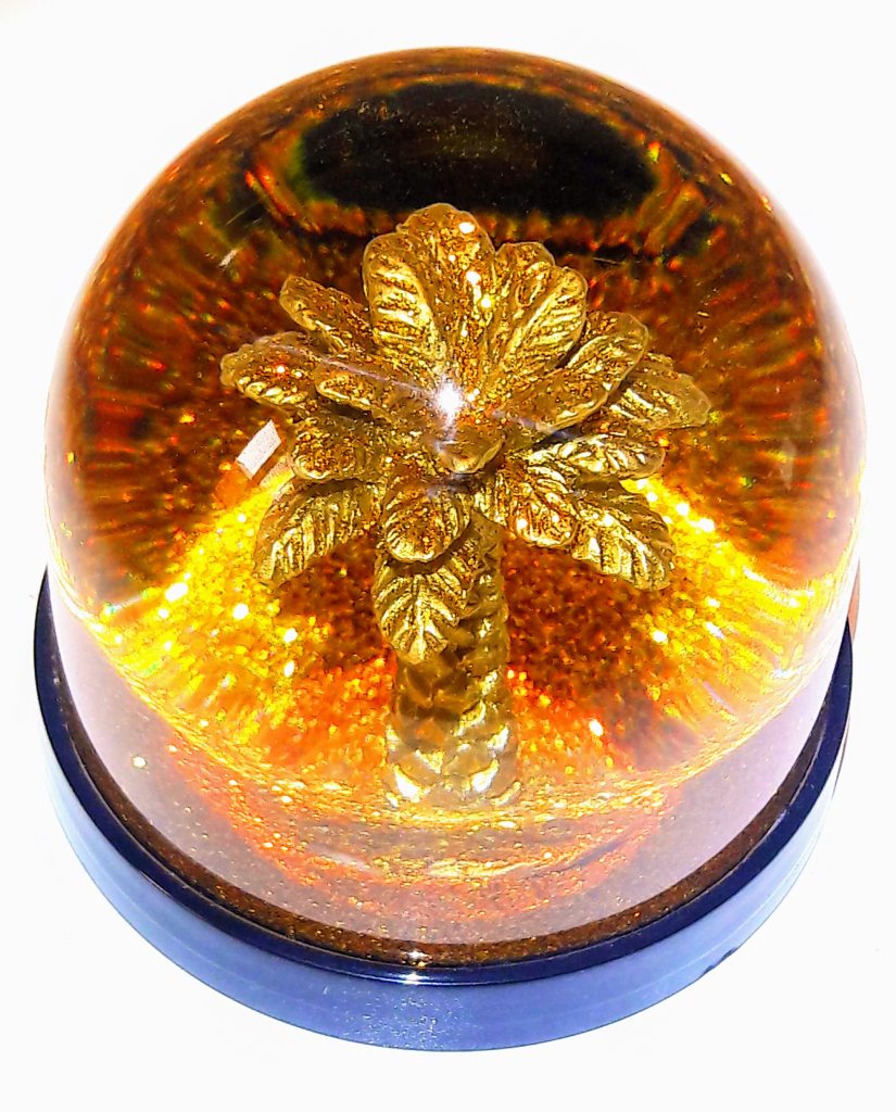 je suis totalement tombée en Amour devant ces boules de neige revisitées, un tantinet kitch et légèrement désuètes. Avec leur côté rétro, elles me plongent dans l’esprit Palm Springs, Miami… la Californie… et m’enrobent d’un sentiment… comment vous dire… vous savez lorsque vous êtes remplie de… inexplicable… bien-être, bonheur… peut-être d’une vie déjà vécue…